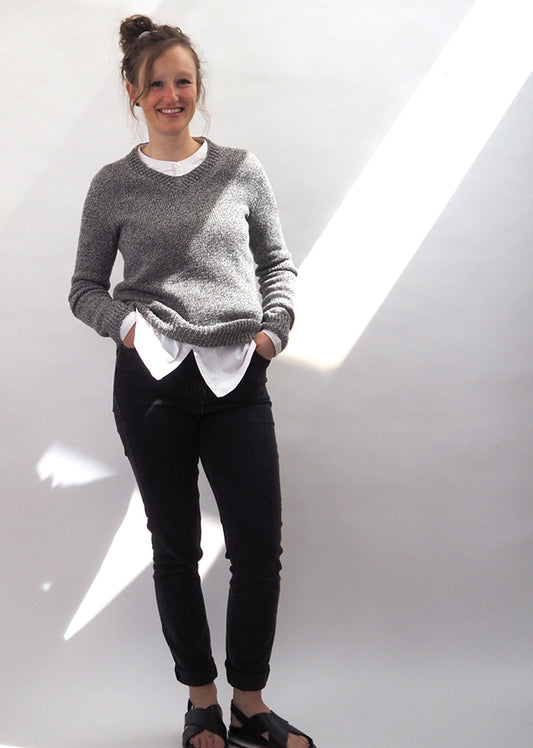 Manchmal braucht es nicht viel. Ein klassischer Schnitt und simple Zunahmen gleichmässig über die Rundpasse verteilt. Lisbet ist einer unserer absoluten Lieblingspullovern. Die Mischung von Leinen und Viskose des Garns - Studio Linen - von Erika Knight, fällt super schön und ist toll geeignet für einen Sommerpulli.